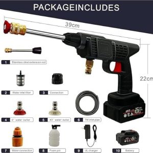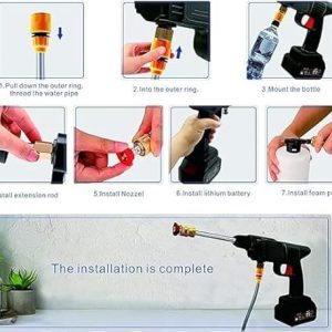 • 48V High Pressure Portable Water Gun – Cordless Car & Bike Washer with Adjustable Nozzle + 5M Hose Pipe