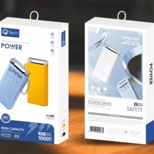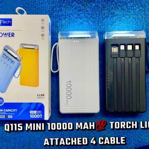 Qtech Q115 Power Bank 10000mAh With Torch Light And Attached Cables (Random Color)