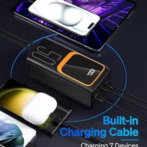 Aspor A350 50,000mAh – Fast Charging with Built-in Flashlight Power Bank for mobile and laptops (Random color)