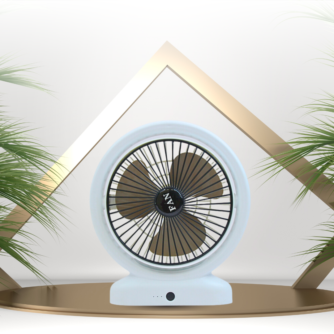 • Desktop Fan Rechargeable, Mini Table Fan, Powerful Electric Fan with  Adjustable Wind Speeds, Portable USB Fan for Home Office and Outdoors | Three-Speed Mini Desktop Fan with Colorful LED Lights – USB & Battery Powered – Random Color