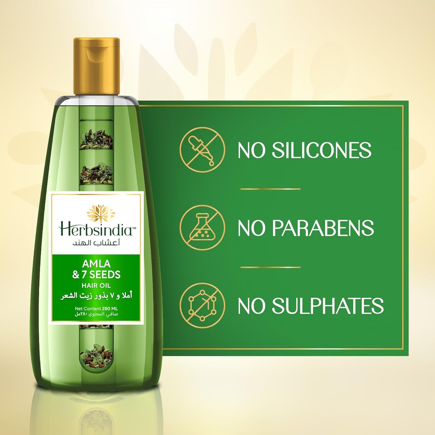 Herbs India Amla & 7 Seeds Hair Oil – 280 ml, Nourishing Blend for Hair Growth, Strength & Shine