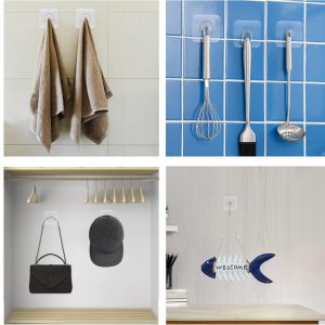 • (Pack of 3 6 Row Transparent Wall Hooks Self Adhesive Clothes Coat Door Hanger Towel Key Holder Bathroom Kitchen Storage Sticker Hook