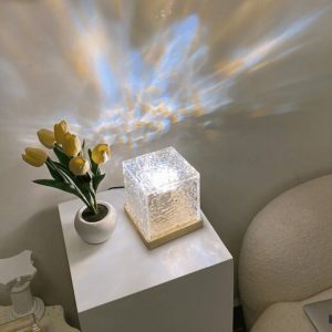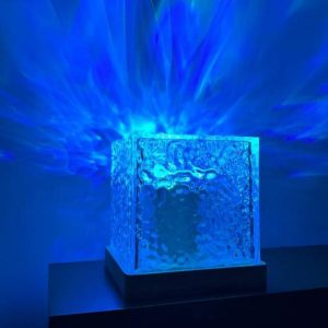 • Dynamic Rotating Water Ripple Night Light 3 Colors Flame Crystal Lamp for Living Room Study Bedroom (with remote Attached USB cable)