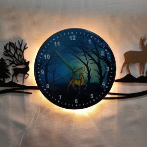 • forest figure Deer 3d wood Wall clock blue jungle with light Fancy Clocks for Bedroom and Drawing Room(with light)