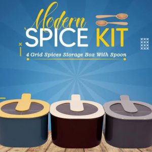 4 In 1 Modern spice kit, partition kitchen seasoning box, 4 Portions spice box with free spoon Modern Spice Kit – Spice Jar (Random Color)