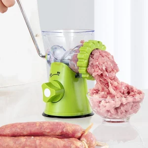 • Manual Sausage Machine Hand Crank Meat Mincer, Household Meat Pounder Tool, Kitchen Meat Grinder Enema Maker, Silver Aluminum