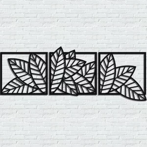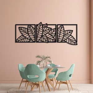 3D wooden 3 Piece Long Leaf Panels | Wall Hanging wooden Art | Wall art I Wall art for room decoration