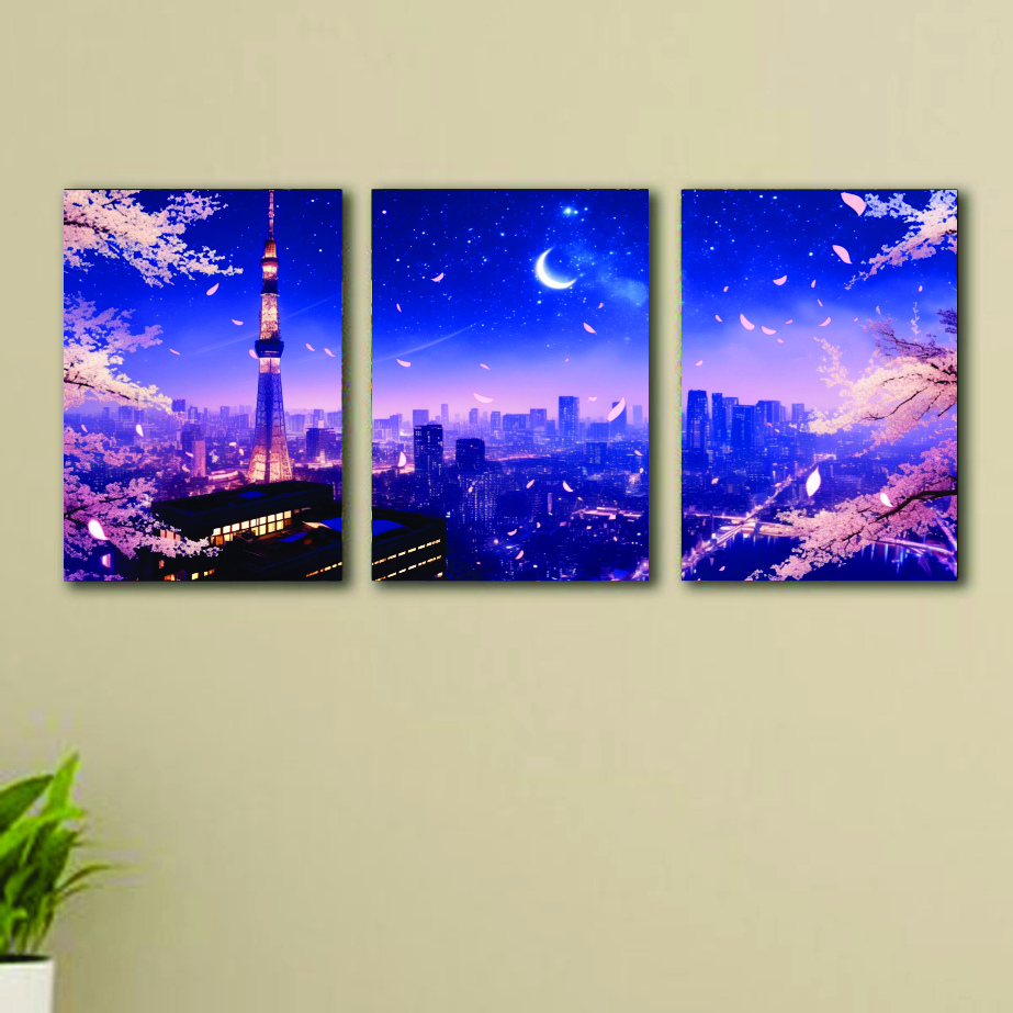 • 3pcs Blue City sticky phototile wall frames Wooden Material  for home decor 8x11inches