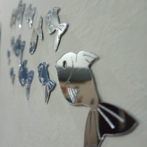 • 30 Pcs  Acrylic Fishes Mirror Wall Art Decor Fishes Mirror Stickers Decals for Kids Girls Bedroom Bathroom Playroom silver