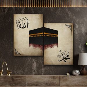 • 2 Islamic wall decor Kaaba wall art 8×11 (1Pcs Size) inches abstract Allah Muhammed art