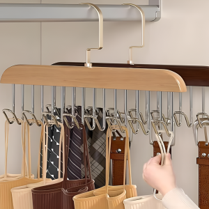 • 8 Hooks Wooden Clothes Hanger With Tie Rack Belt Hangers with 360Β°Rotating