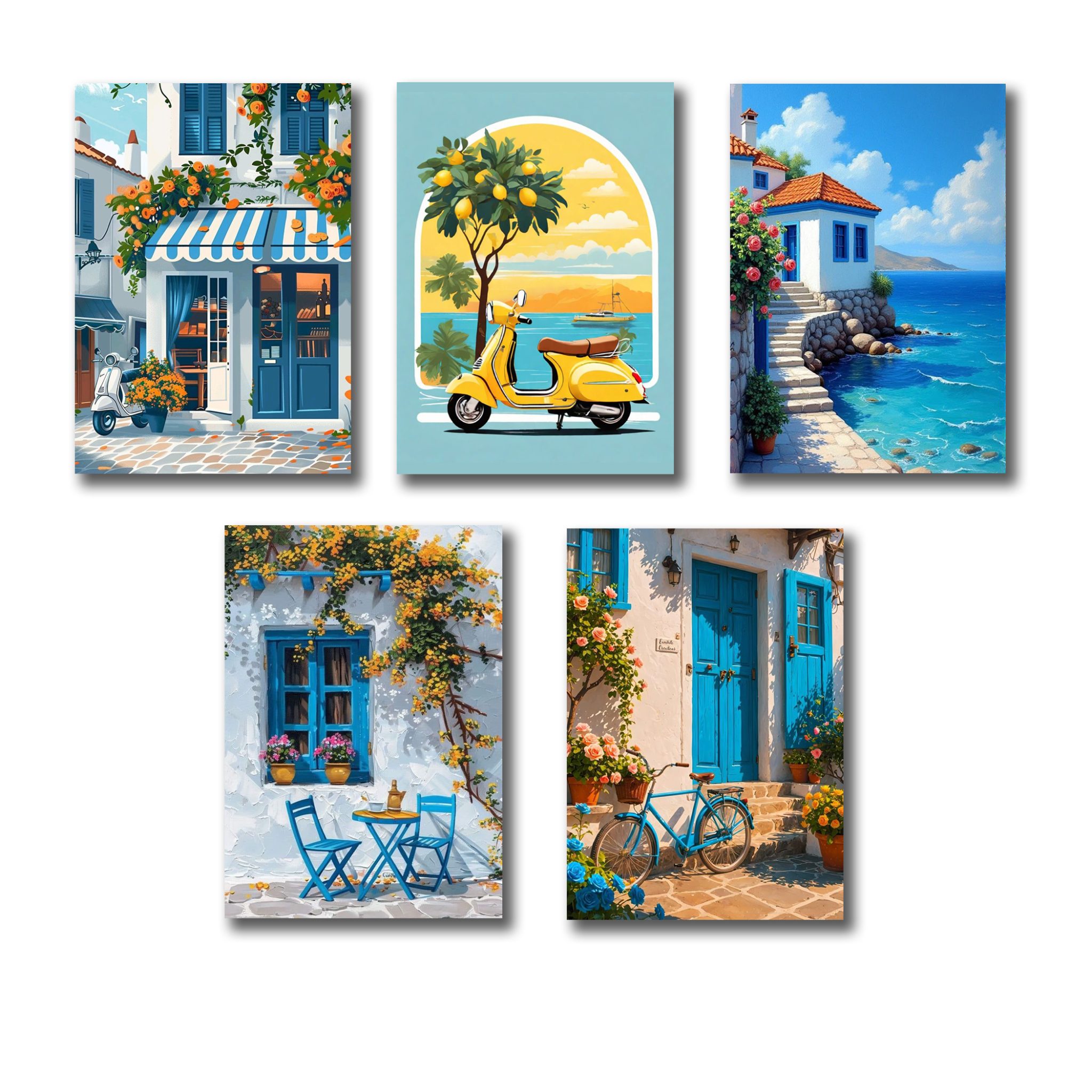 • Set of 5 Italian Vintage Homes Art Themed Wall Art Wooden Sticky Phototile Frames for Wall Home and Girls Room Decoration
