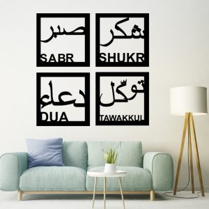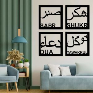 Sabr, Shukr, Dua & Tawakkul Islamic Calligraphy 3D Wooden Wall Decorative Gift Stylish Design Office Living Room I Decorating Items