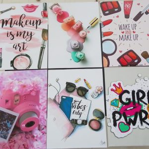 set of 5 make up themed girls room decore wall art wooden sticky Phototile frames
