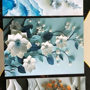 • Set of 5 Blue Flowers Wall Art Wooden Frames for Home Decoration / Sticky Photo Tiles