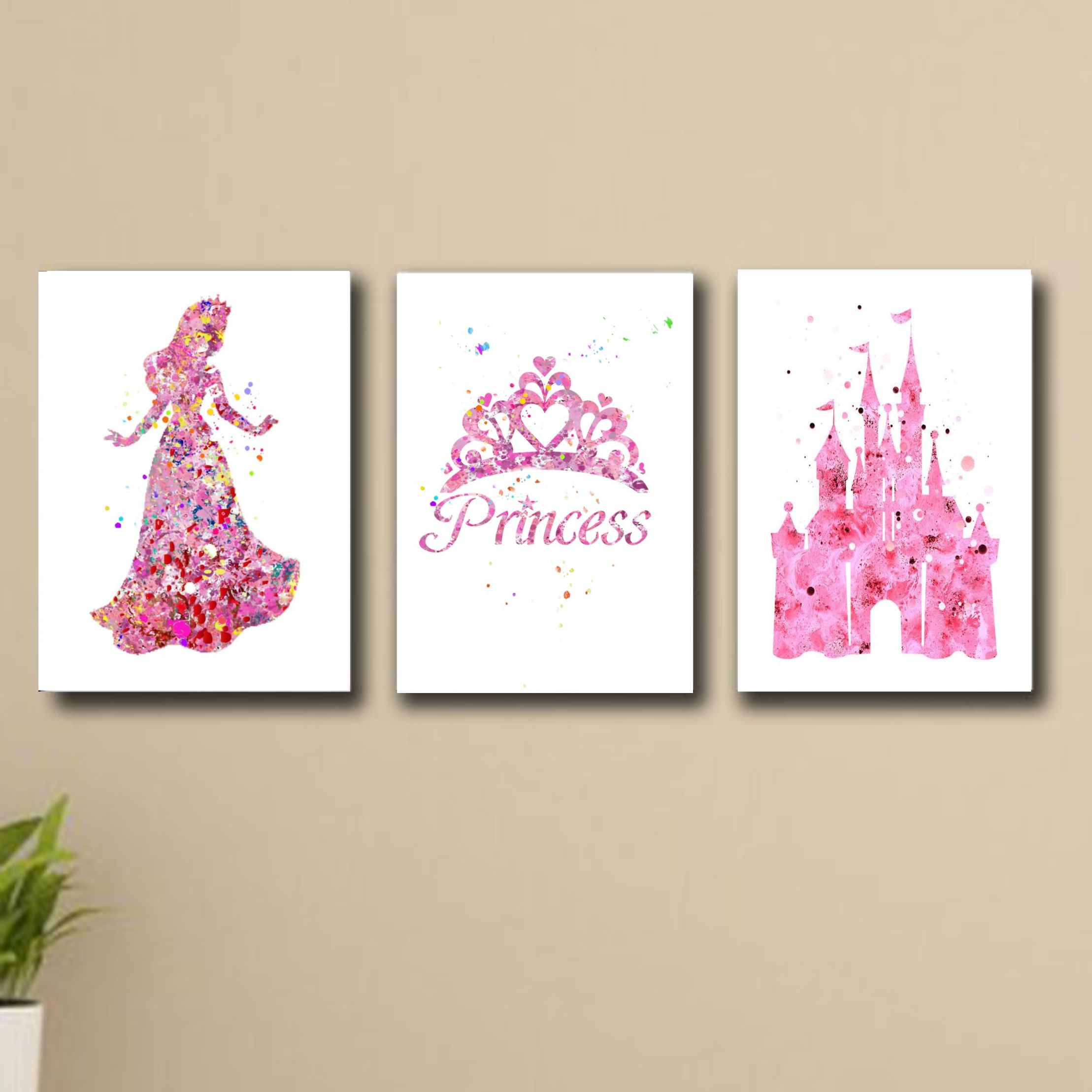 set of 3 abstract plant art wooden canvas frames for wall decore / sticky phototiles for home and office