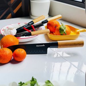 • Thermomixer 4-Piece Japanese Knife Set – Self-Sharpening Blades with Wooden Handles