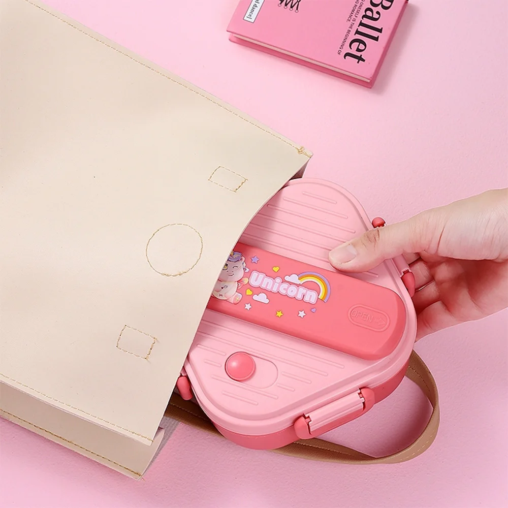 • 3 Grids Unicorn Lunch Box For Children Students Sandwich Fruit Food Storage Container Cartoon Kids Bento Box For School Camping – Random Color