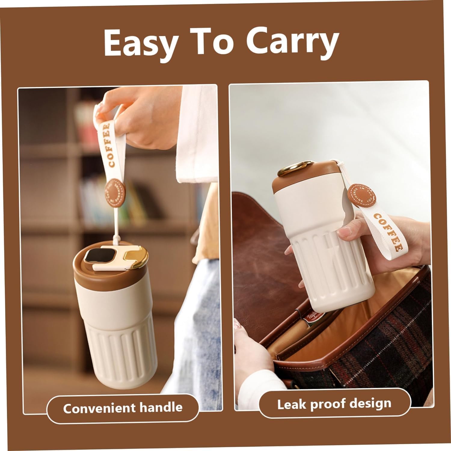 • Coffee Thermos with Temperature Display | Coffee Mug Smart Sensing Intelligent Display with Lanyard | Portable Stainless Steel Hot and Cold Coffee Cup 450ml (random color)