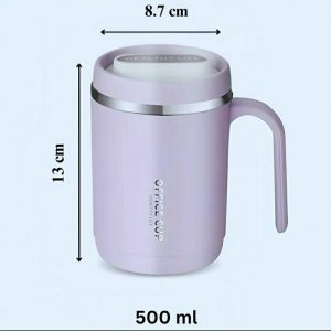 Stainless Steel Coffee Mug | Office Cup | Tea Cup | Insulated Coffee Mug with Handle | Premium Clear Cap Mug with Lid for Coffee,Tea &Milk 500 ml (Random color)