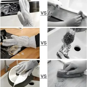 Multipurpose Wire Dishwashing Gloves – Glove-Shaped Steel Wire Cleaning Cloths for Wet & Dry Use | Non-Scratch, Anti-Heat Aluminum Dishwashing Rags for Kitchen & Dishes