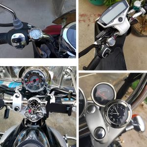 • Universal Waterproof Chrome Motorcycle Handlebar Clock – Luminous Quartz Watch for Bikes | Stylish and Durable ( Silver)