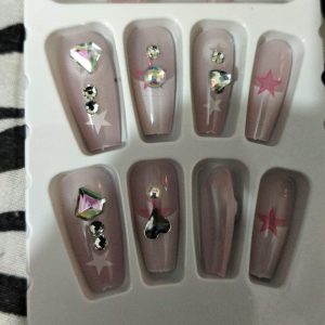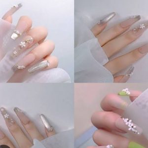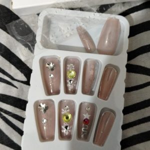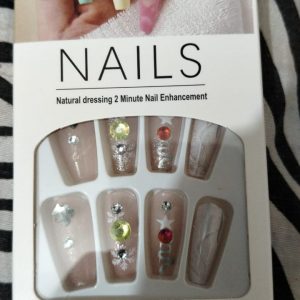 • 10 PCs Fake Nails False Nails Wearable Nails Stylish Pattern Artificial Nails | Fake Nails For Girls | Artificial Nails For Women with Sticking Dots ( Random Design )