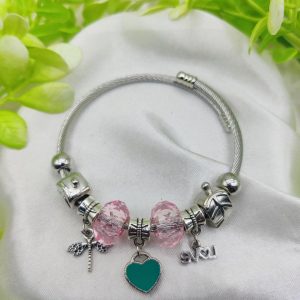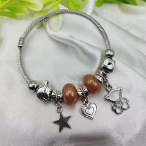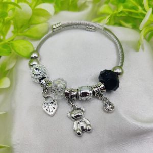 1 Piece Imported Elegant Charm Steel Wire Pandora Bracelet with Bear and Heart Details | Best Quality Bracelet For Girls