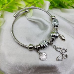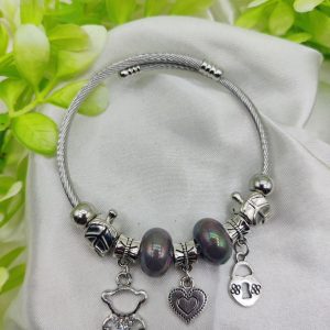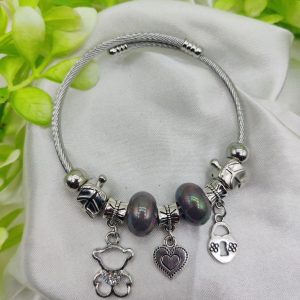 • 1 Piece Imported Elegant Charm Steel Wire Pandora Bracelet with Bear and Heart Details | Best Quality Bracelet For Girls