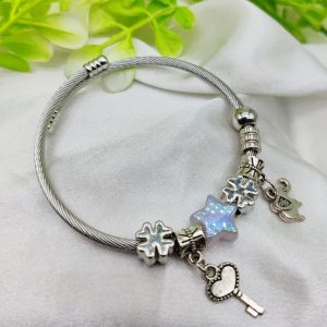 • 1 Piece Imported Elegant Pandora-Style Charm Bracelet – Starry Opalescent Design | Best Quality Artificial Bracelet For Girls & Women
