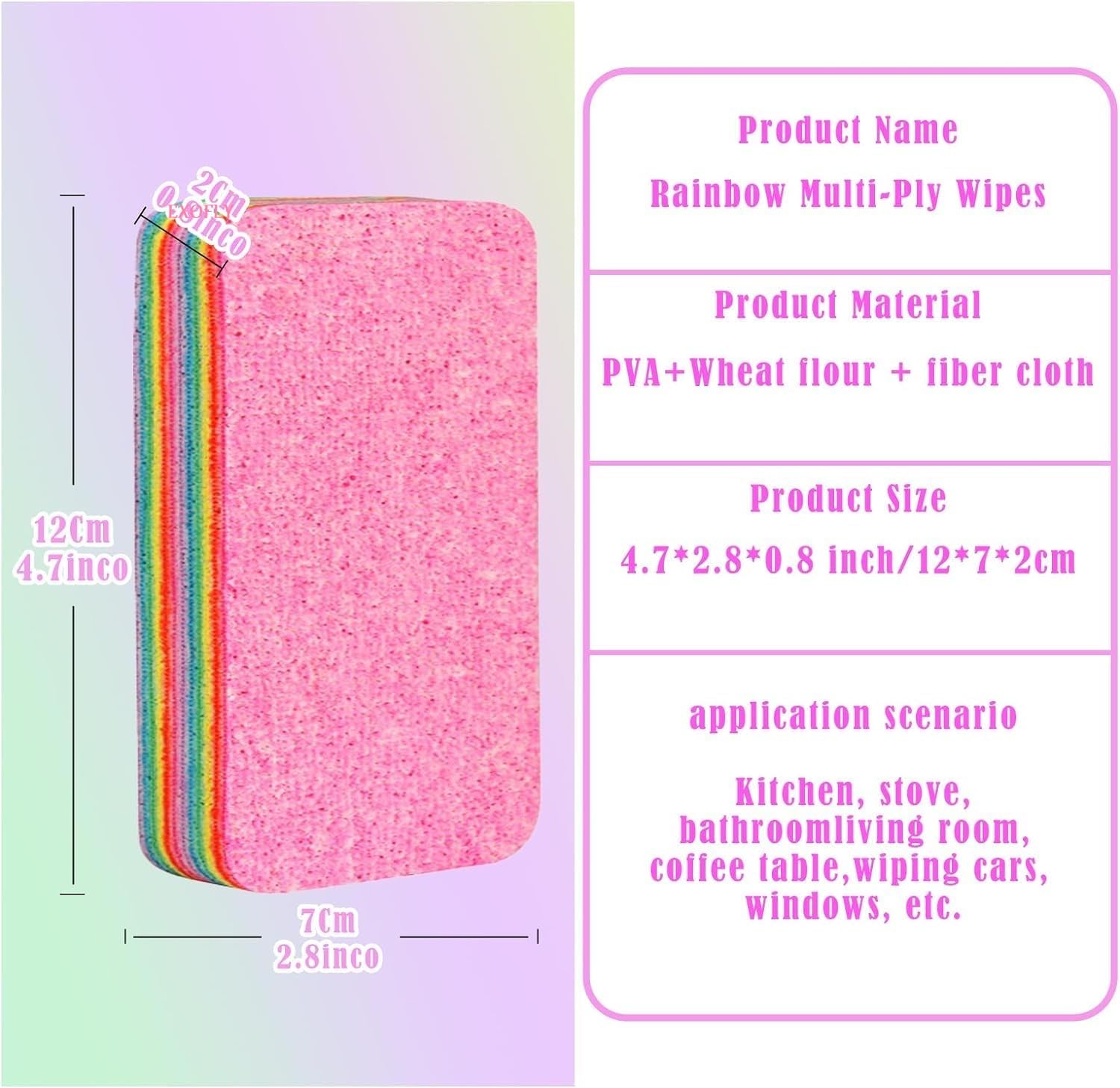 12-Layer Tearable Rainbow Rag, Reusable Dual Sided Dish Sponge, Rainbow Scrub Sponge, Multi-Purpose Cleaning Rag for Cars, Glass, Furniture (Random color)