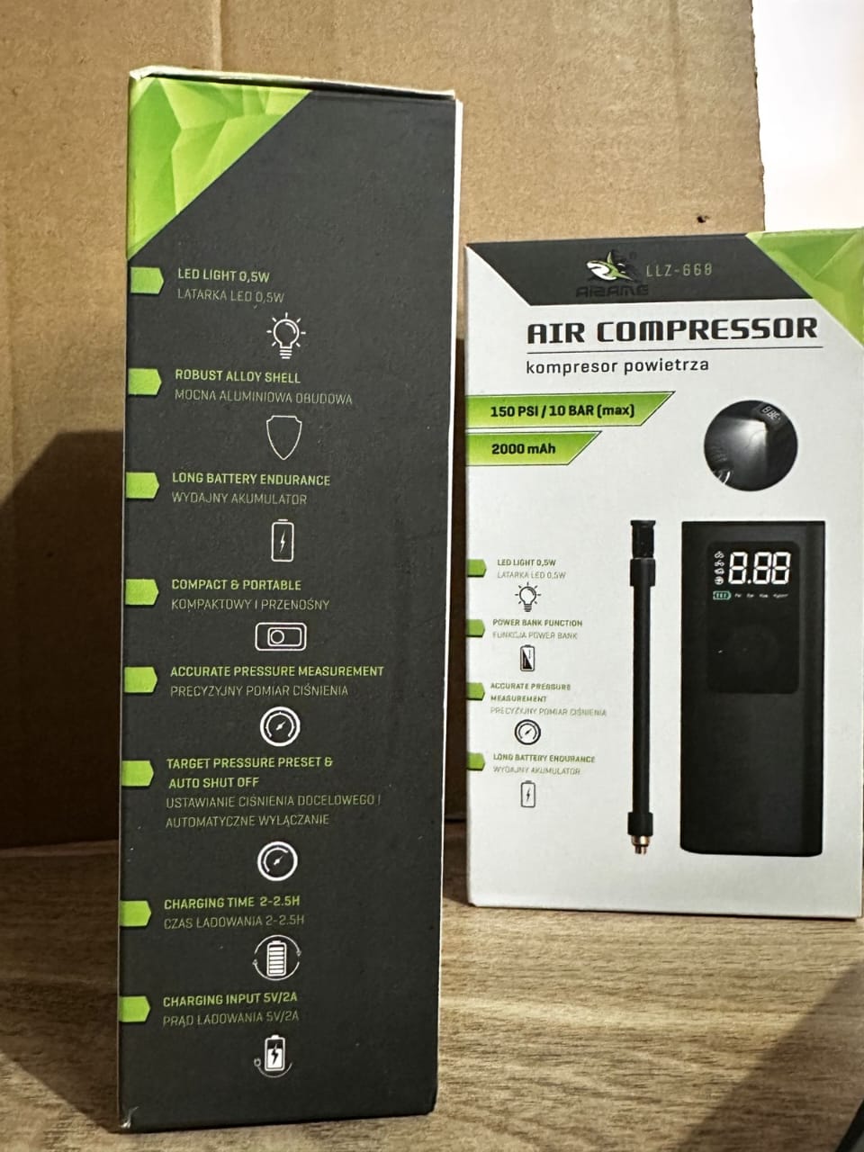 Never Get Stranded with Flat Tires Again! The RIR COMPRESSOR is a cordless, portable air pump designed for quick, hassle-free inflation of car tires, bicycle wheels, sports balls, and more. With a powerful 150 PSI (10 BAR) max pressure and a long-lasting 2000mAh rechargeable battery, this compact compressor is your go-to solution for emergencies, road trips, or daily use.