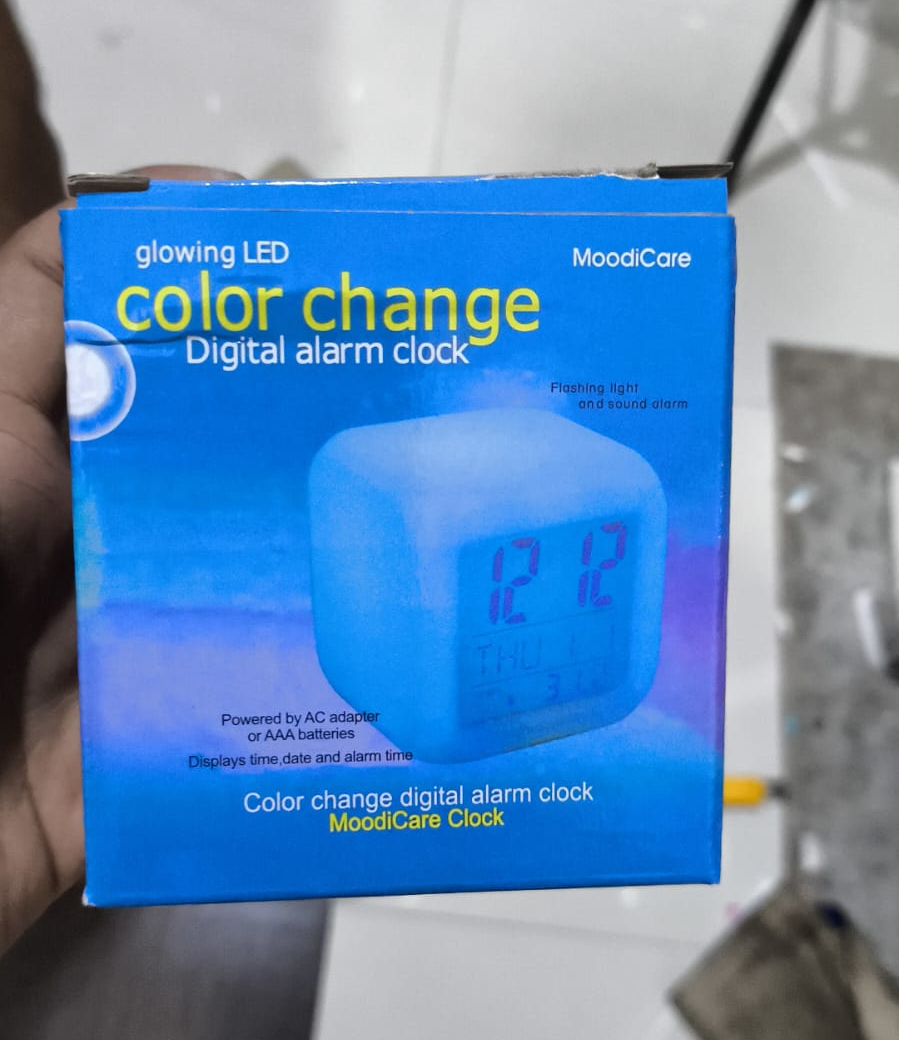 - Our digital clock glows in 7 different colors, so you can choose what works best with you in the morning .