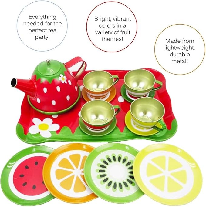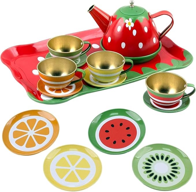 Fruit Theme Tea Party Play Set – 14PCS Colorful Pretend Tea Set for Kids with Cups, Teapot, Saucers & Accessories – Fun Role Play Toy for Toddlers & Girls – Ideal for Birthday Gifts & Playdates