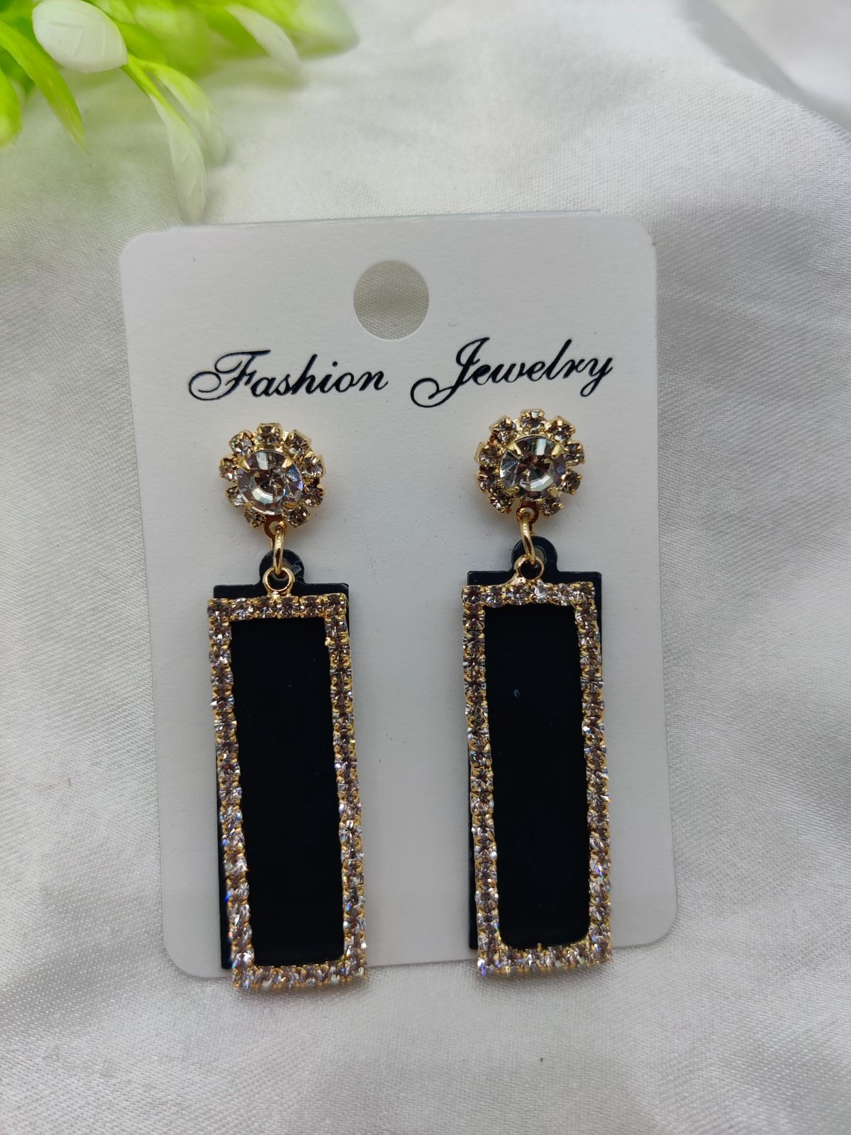 ✨ Elevate your style with these dazzling black and gold crystal drop earrings! Featuring a sleek black rectangular centerpiece bordered with sparkling crystals, these earrings exude luxury and sophistication. The intricately designed crystal-studded top enhances the elegance, making them the perfect accessory for any occasion.