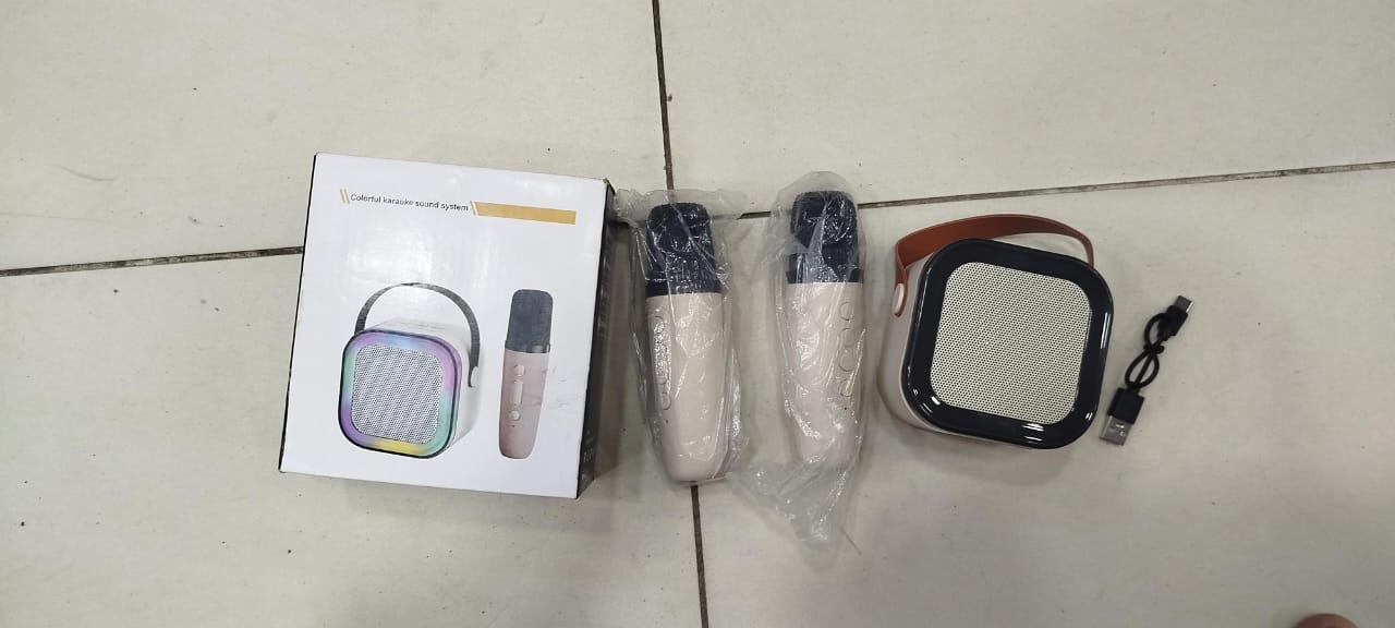is a compact, wireless Bluetooth speaker with a built-in microphone designed for karaoke and family entertainment. Perfect for both indoor and outdoor use, it delivers powerful sound in a portable form factor. The speaker connects easily to mobile devices via Bluetooth, allowing you to stream music and sing along anywhere. Its lightweight design and rechargeable battery make it convenient for picnics, parties, and other gatherings. Ideal for karaoke lovers and casual music play on the go.