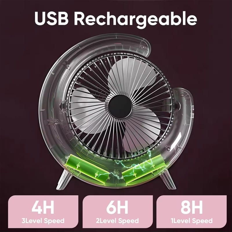 Product desccrition of Multi-Functional LED Desktop Fan β USB Rechargeable:
