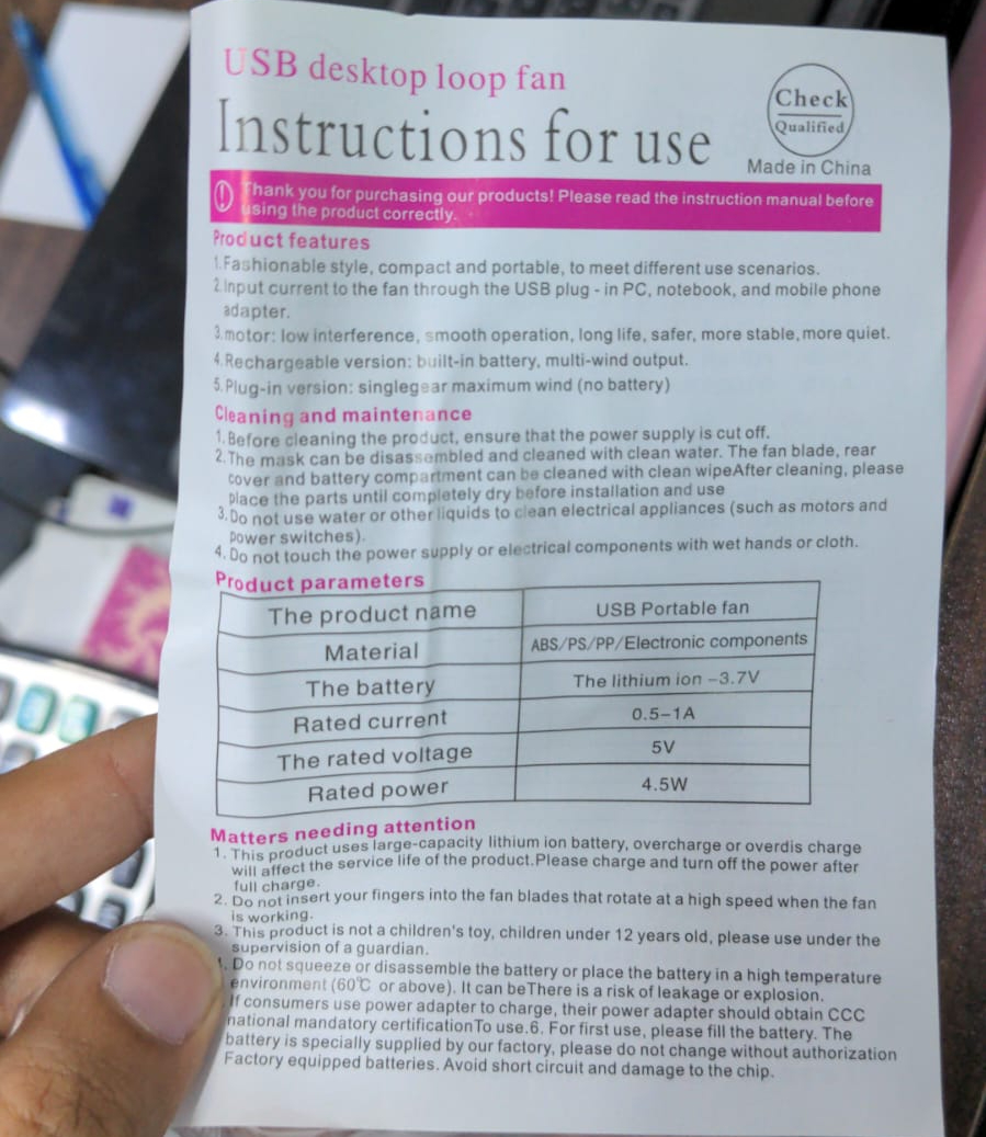• . Easy to operate, just press the front net and rotate counterclockwise to take out the fan to stretch out