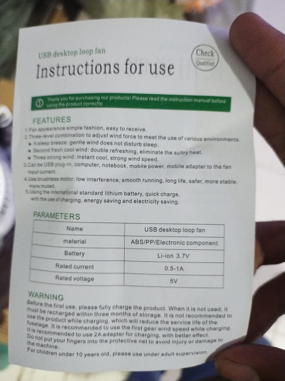 Rechargeable: this desk fan is rechargeable and can be used for a long time. it is very convenient to use, and it is also very convenient to carry.