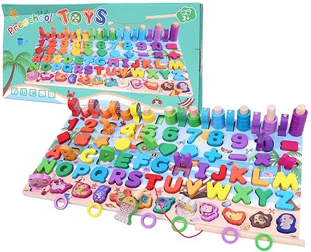 Wooden Puzzle Sorting Learning Board Toys | ABC, Numbers, Shapes, Abacus, Fish Picking Activity and Animals | Preschool Education Montessori Toys